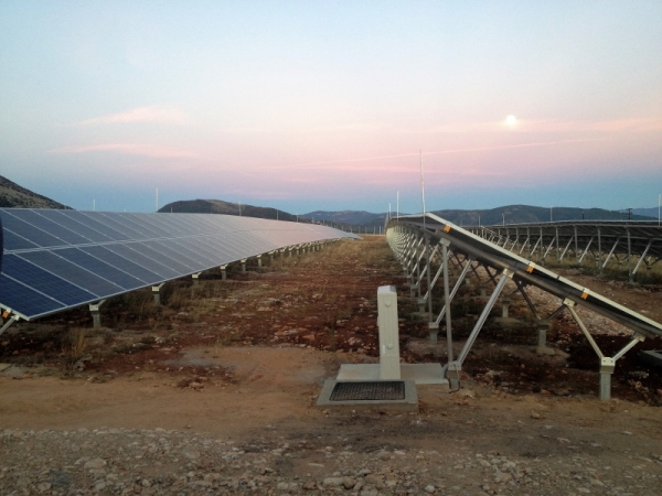 PV station includes 7.884 EGing polycrystalline PV panels, type EG- (SERIES) P60-C at 250Wp nominal power. They are installed on mounting structures by Alumil Solar. Produced DC energy is converted to AC through three central SMA inverters, type 630 CP-XT.